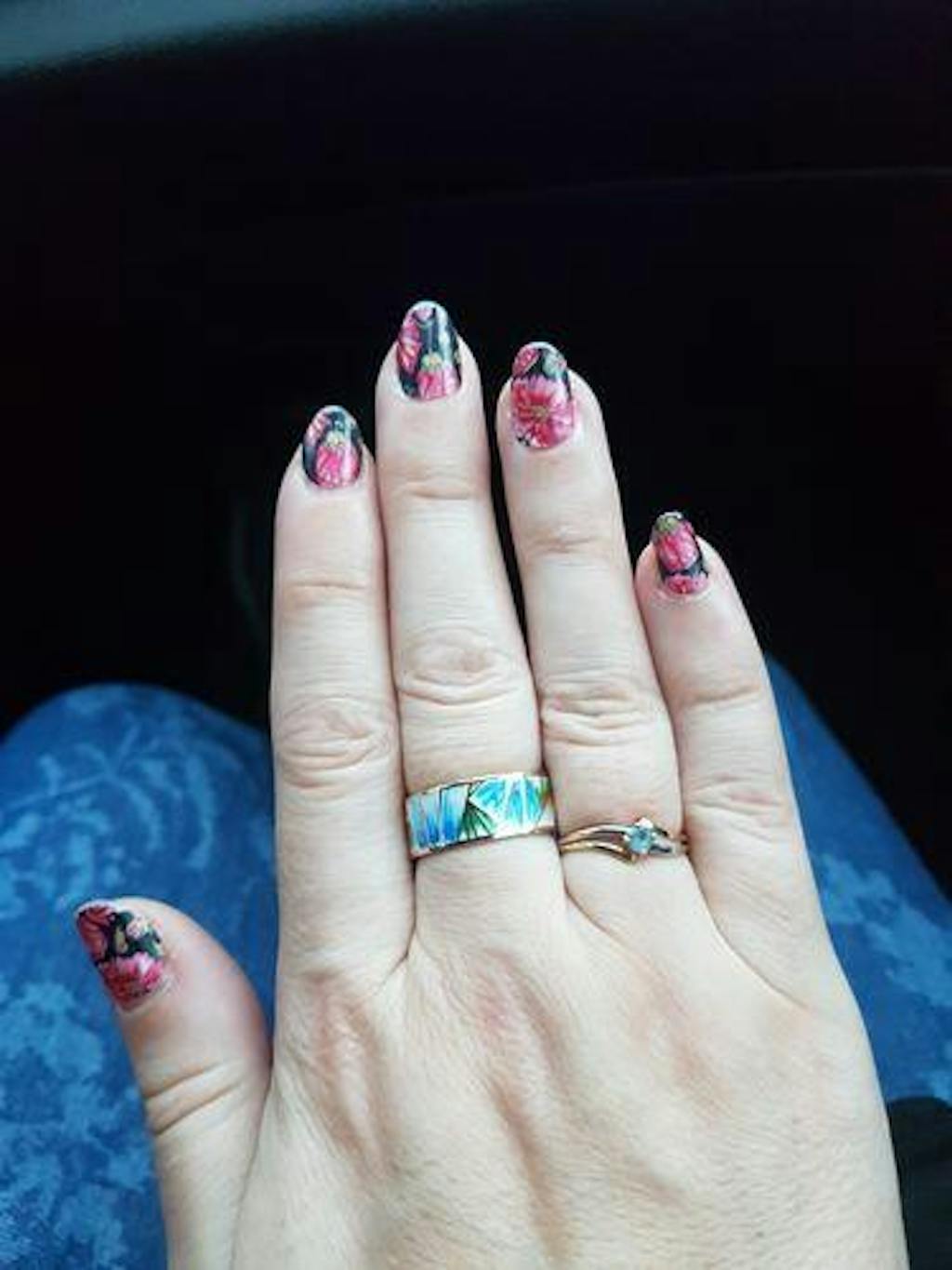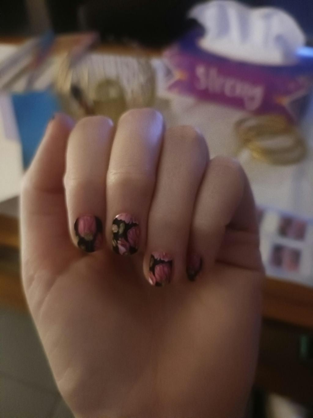 Je n'ai utiliser que les bandelettes motif fleur qui sont transparente que j'ai poser sur un vernis que j'aime beaucoup j'adore le rendu et utiliser les bandelette ca ma réconcilier sur le fait de pouvoir avoir de jolis ongle et je passe moins de temps les faire merci pour ce super concepts